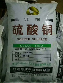 3.工业领域。用于制造其他铜盐如氯化亚铜、氯化铜、焦磷酸铜、氧化亚铜、醋酸铜、碳酸铜,铜单偶氮染料如活性艳蓝、活性紫等;涂料工业用于生产船底防污漆;电镀工业用作全光亮酸性镀铜主盐和铜离子添加剂;印染工业用作媒染剂和精染布的助氧剂;有机工业用作合成香料和染料中间体的催化剂,甲基丙烯酸甲酯的阻聚剂。无水盐用于催化转缩醛反应。无水盐与高锰酸钾反应生成一种氧化剂,用于伯醇的转换。